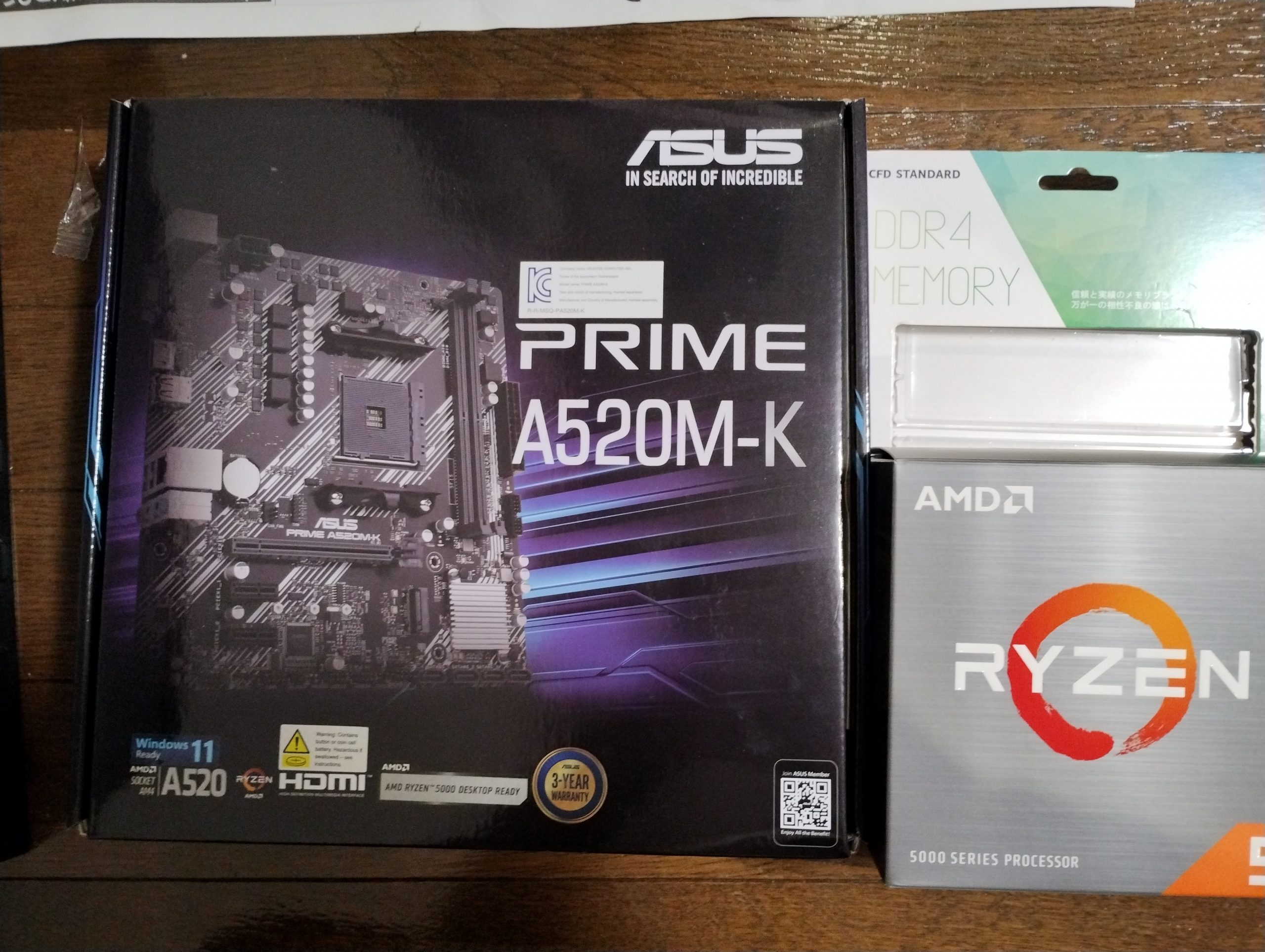 用意したのは写真の3点。マザーボード、cpu、メモリー8G2枚(すでに装着)しめて約26,000円アマゾンで購入。安いよね。